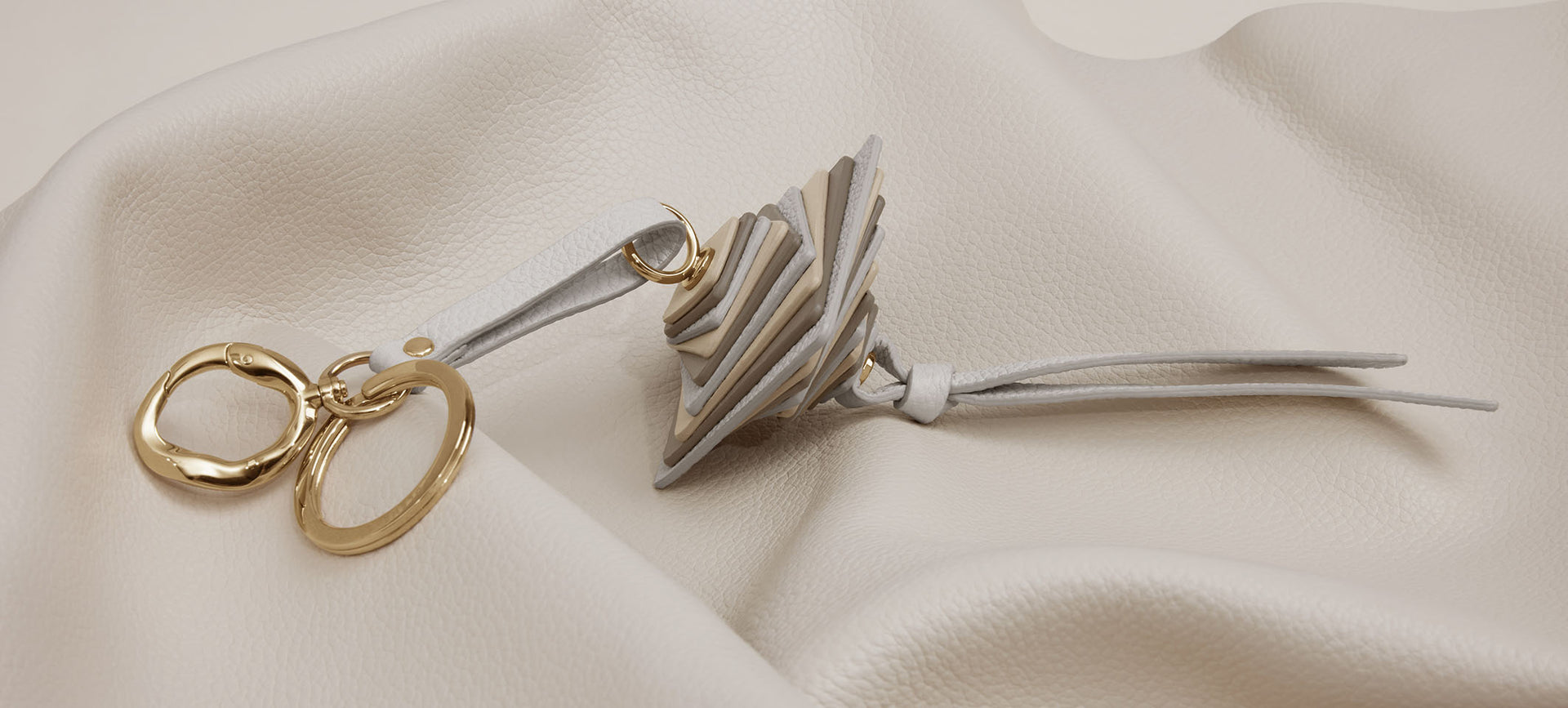 Polène가 각인된 두 개의 금속 링을 이용하여 열쇠 고리나 백 참으로 연출할 수 있습니다.
