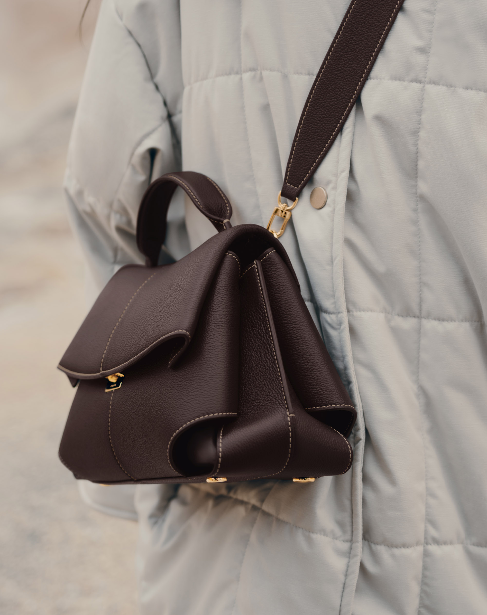 모키(Mokki)는 텍스처드 레더를 아름답게 접어낸 디테일이 돋보이는 백입니다. 커팅된 모서리에 보이는 스무스 가죽으로 섬세한 소재의 변화를 주었습니다.