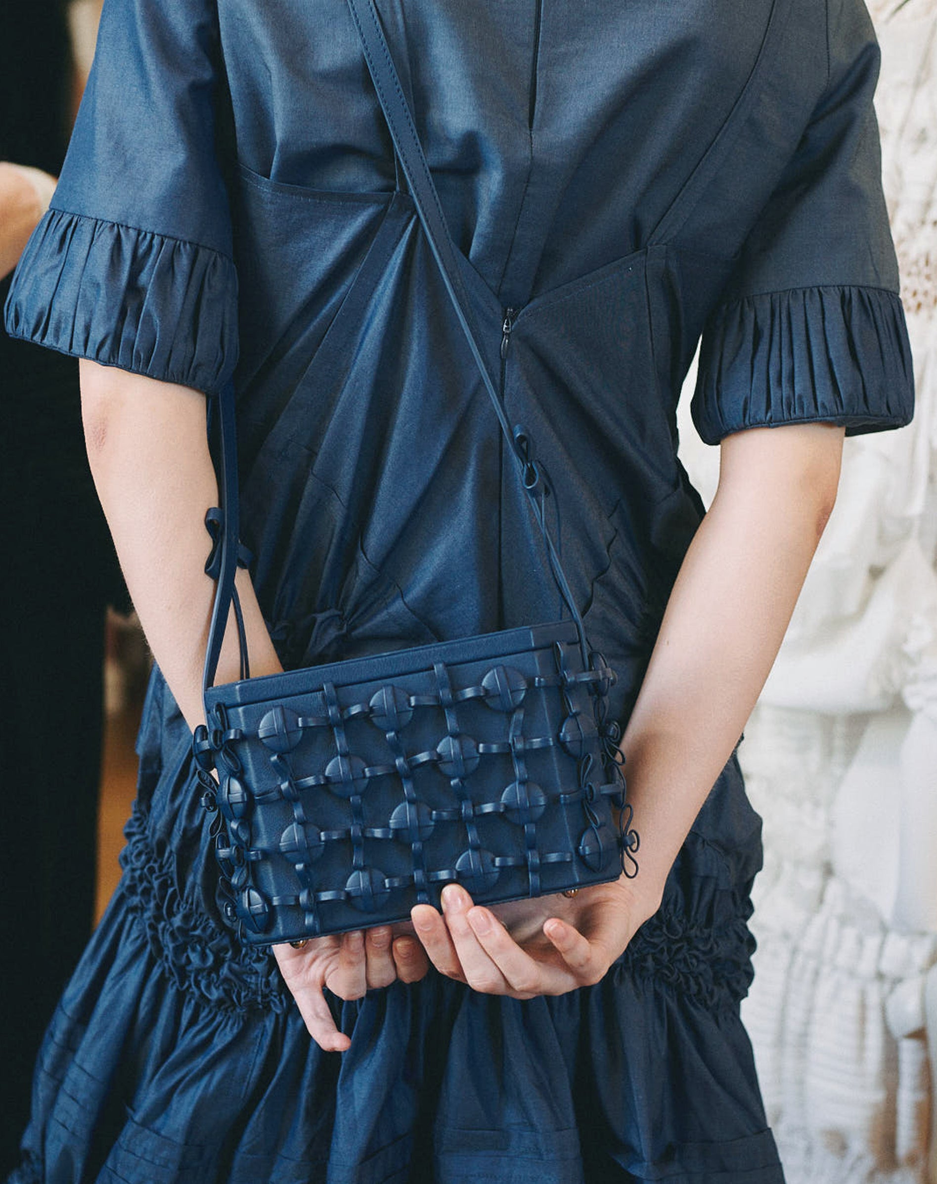 폴렌느가 처음으로 독립 디자이너에게 가방 디자인을 맡기며, 로이신 피어스는 가죽이라는 새로운 매개를 통해 순수함과 부드러움, 시적인 감성이 깃든 자신만의 창의적 작품 세계를 표현할 수 있었습니다. 특히, 스모크, 레이스, 크로셰 같은 정교한 기법을 활용해 부드러운 형태감과 섬세하고 독창적인 플로럴 디자인을 선보이며 텍스타일 공정의 새로운 가능성을 제시했습니다.