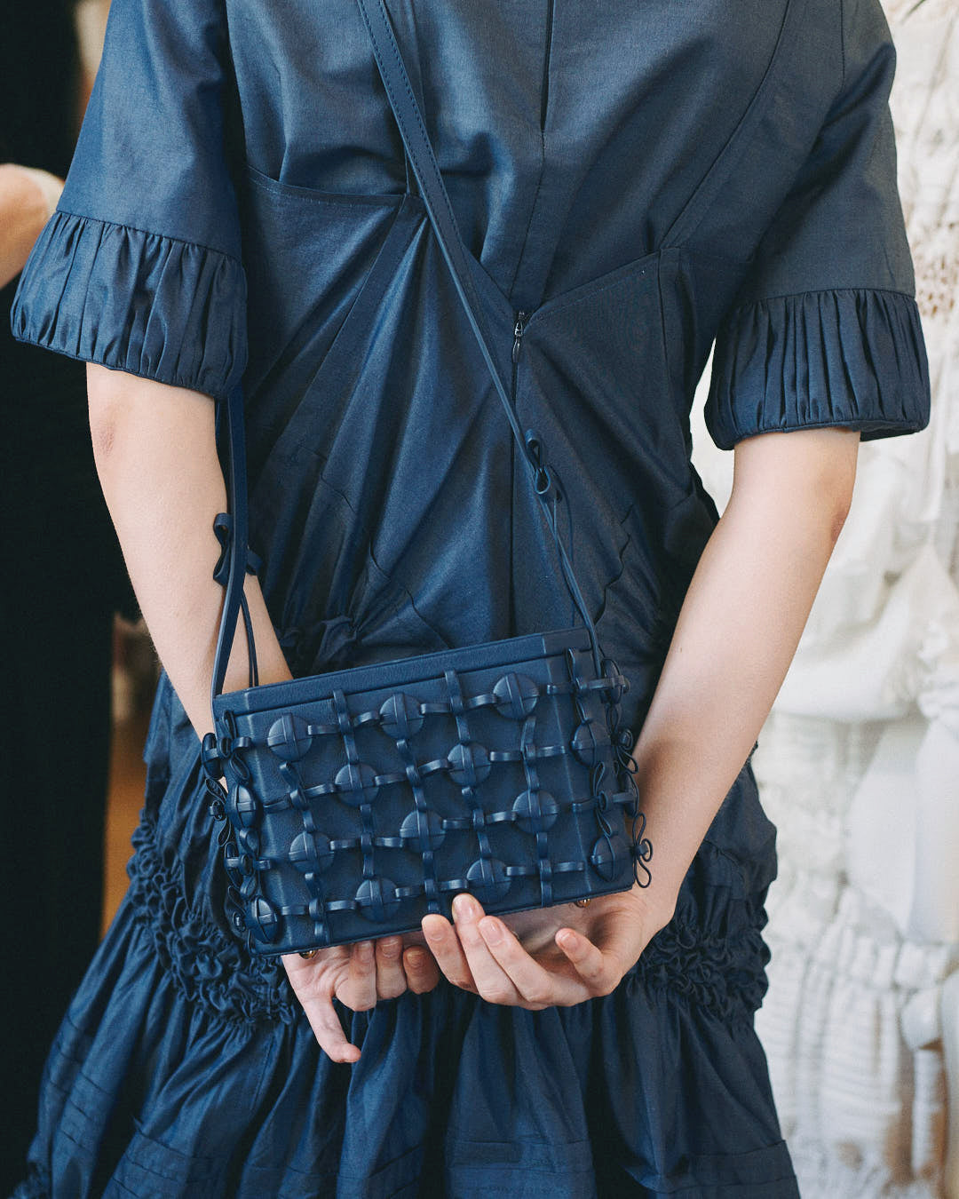 독특한 실루엣과 아일랜드 전통 자수를 현대적으로 재해석한 디자인으로 유명한 디자이너가 자신의 시적 세계를 가죽으로 확장했습니다. 형태와 장인 정신에 대한 연구를 통해 스페인 우브리케의 폴렌느에서 수작업으로 제작한 두 가지 조각 가방을 선보입니다.