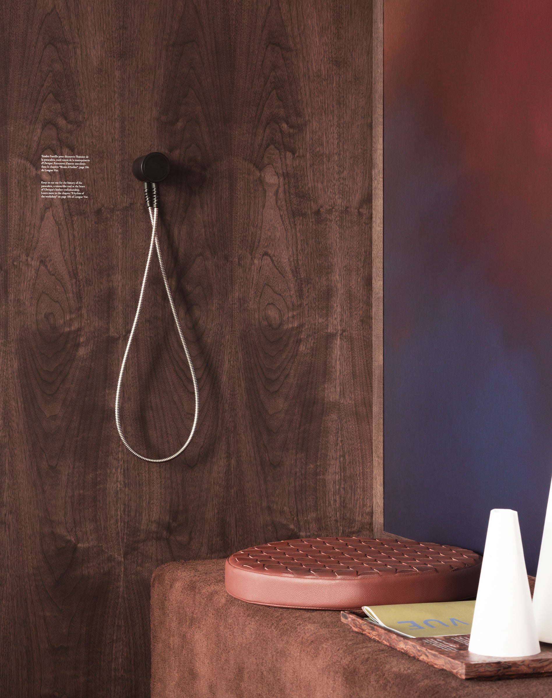 부티크의 다른 한편에는 『Longue Vue』 창간호를 여유로이 넘겨보거나, 그 중 한 챕터를 오디오로 감상하며 사색에 잠기기 좋은 공간이 마련되어 있습니다.