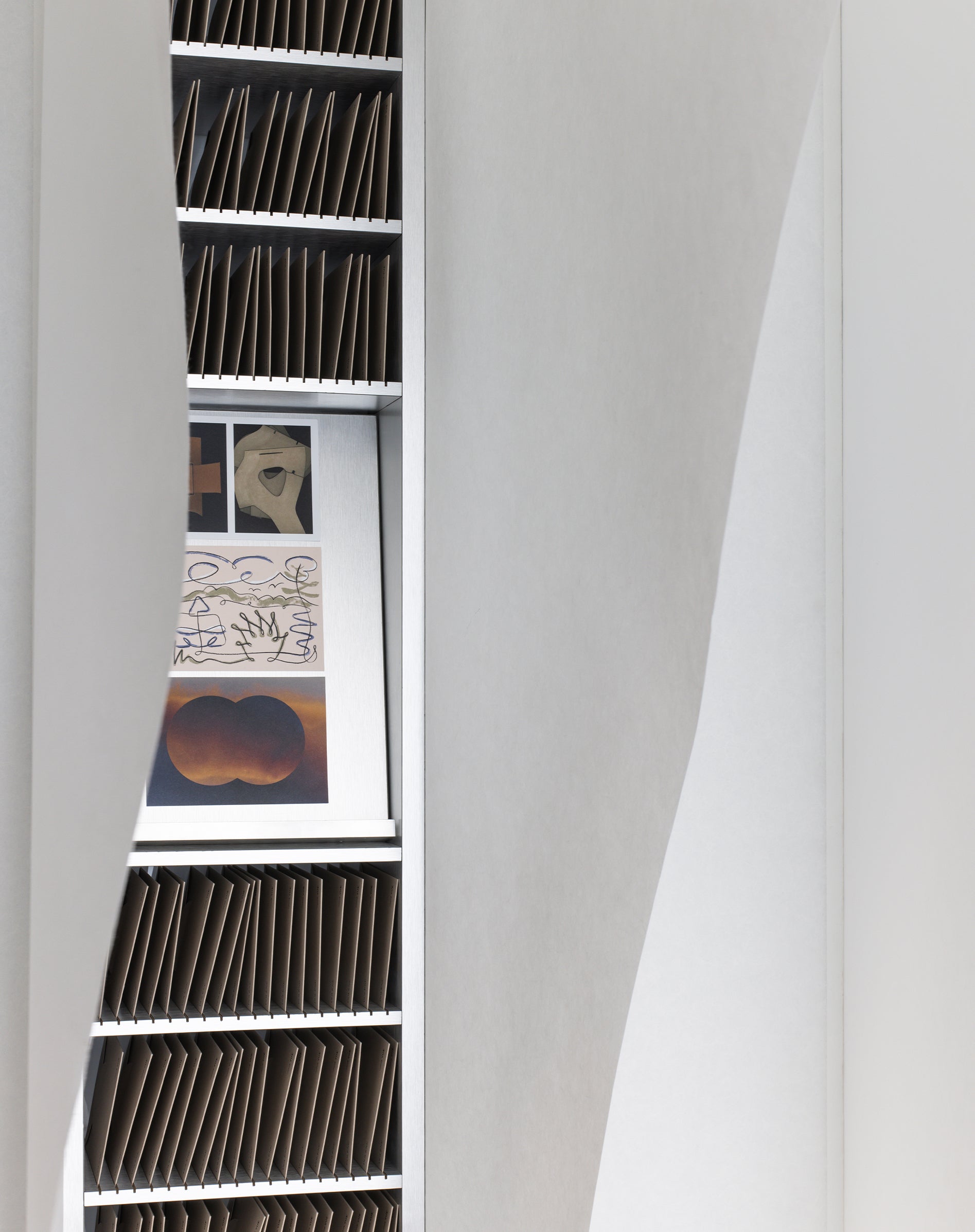 『Longue Vue』속 사진들로 제작된 엽서와 포스터들 곁으로 가죽 노트 커버, 종이접기에서 영감을 받은 스티커, 그리고 예술적인 가죽 참(charm) 장식을 발견할 수 있습니다.