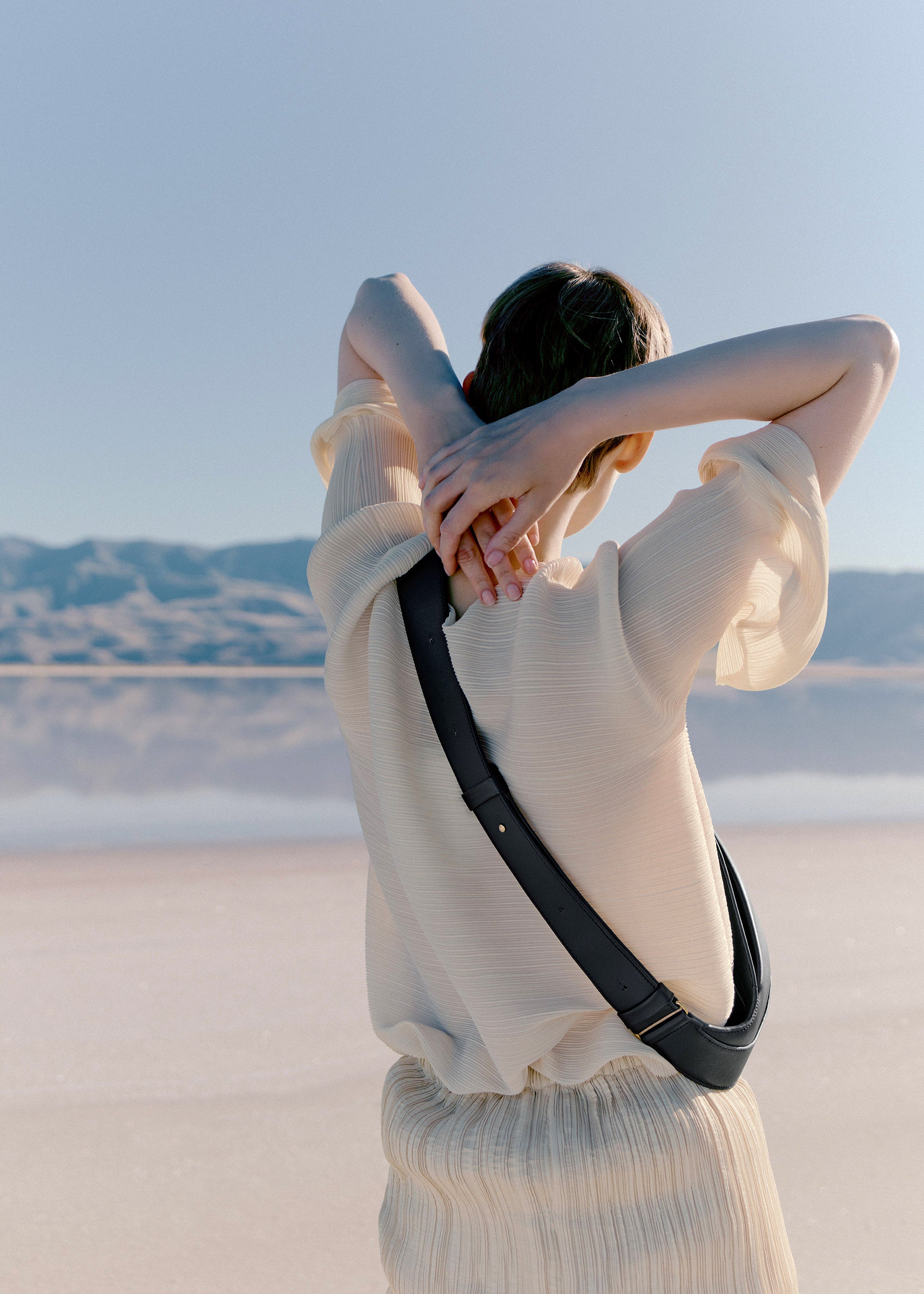 니유 백은 부드러운 나파 가죽을 접어 만든 정교한 주름과 구조적인 드레이핑 실루엣이 감각적으로 어우러진 디자인이 특징입니다. 몸을 부드럽게 감싸며 자연스럽게 밀착되는 특별한 패턴 설계로 일상의 다양한 움직임에 자연스럽고 편안하게 반응합니다. 길이 조절이 가능한 와이드 스트랩을 이용하여 크로스바디 백이나 숄더 백으로 연출하실 수 있습니다.