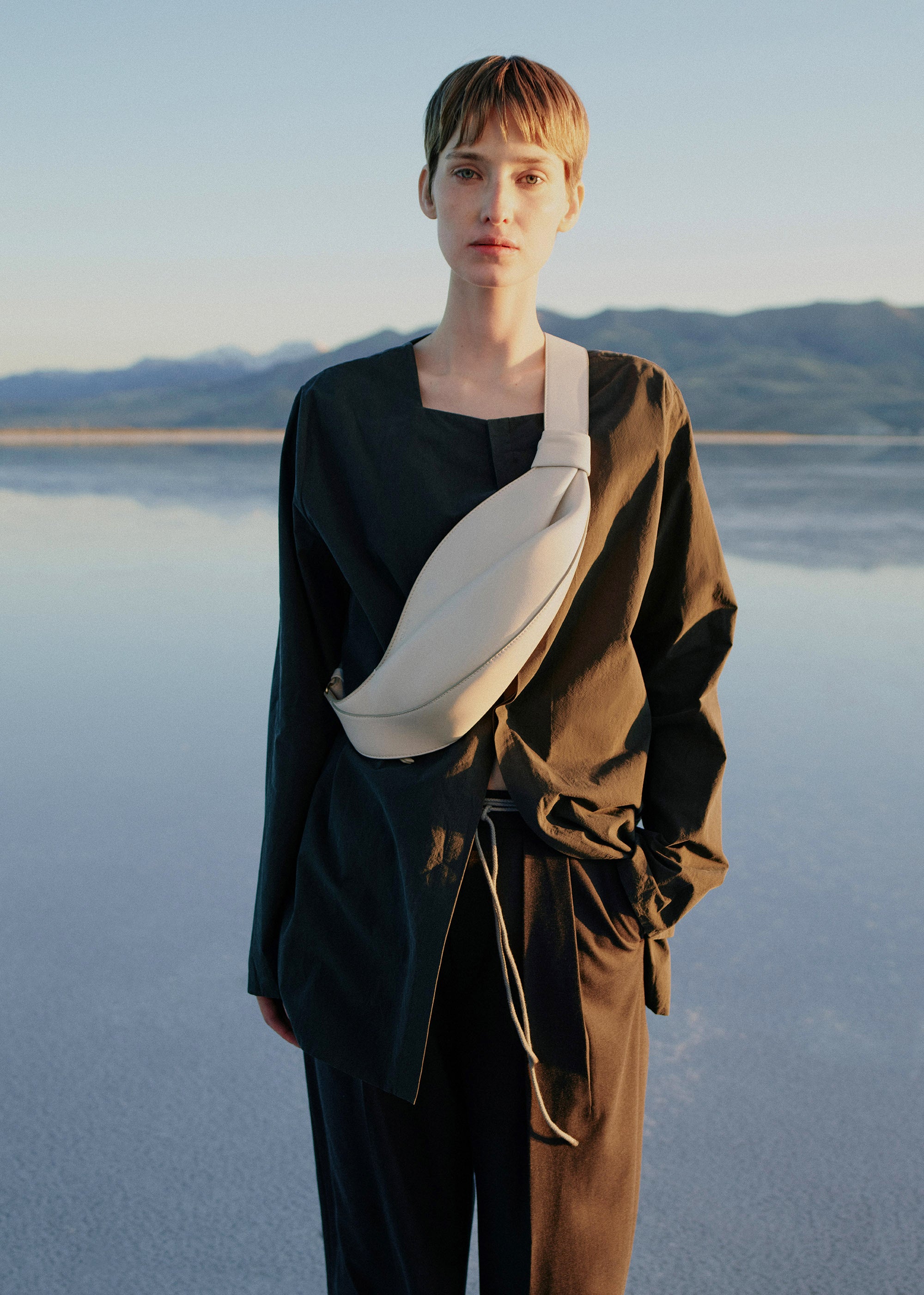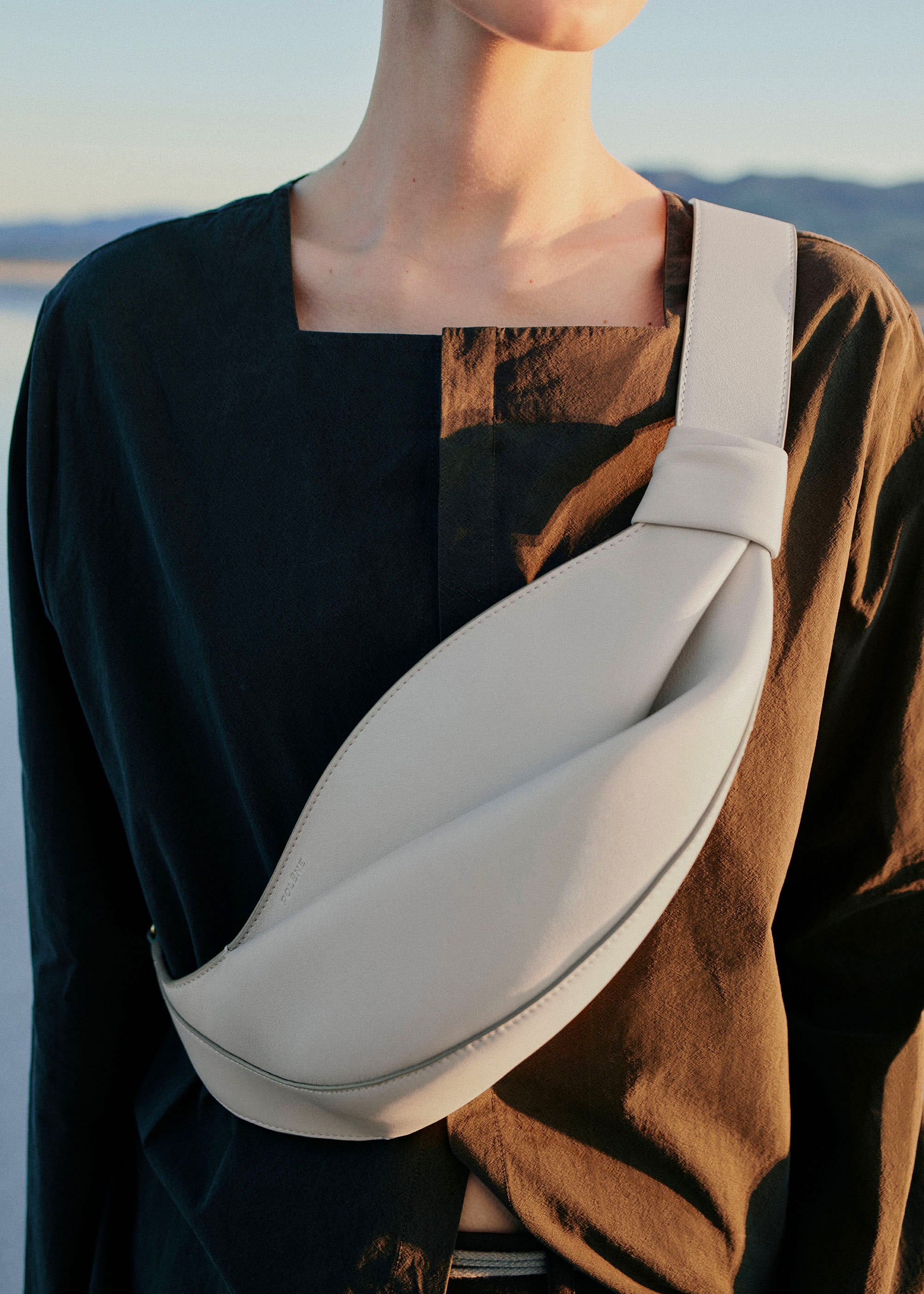 니유 백은 부드러운 나파 가죽을 접어 만든 정교한 주름과 구조적인 드레이핑 실루엣이 감각적으로 어우러진 디자인이 특징입니다. 몸을 부드럽게 감싸며 자연스럽게 밀착되는 특별한 패턴 설계로 일상의 다양한 움직임에 자연스럽고 편안하게 반응합니다. 길이 조절이 가능한 와이드 스트랩을 이용하여 크로스바디 백이나 숄더 백으로 연출하실 수 있습니다.